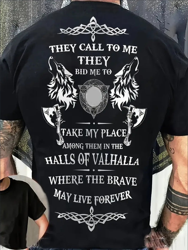 Retro Viking Pattern Print, Men's Graphic Design Crew Neck Novel T-shirt, Casual Comfy Tees Tshirts For Summer, Men's Clothing Tops For Daily Vacation Resorts