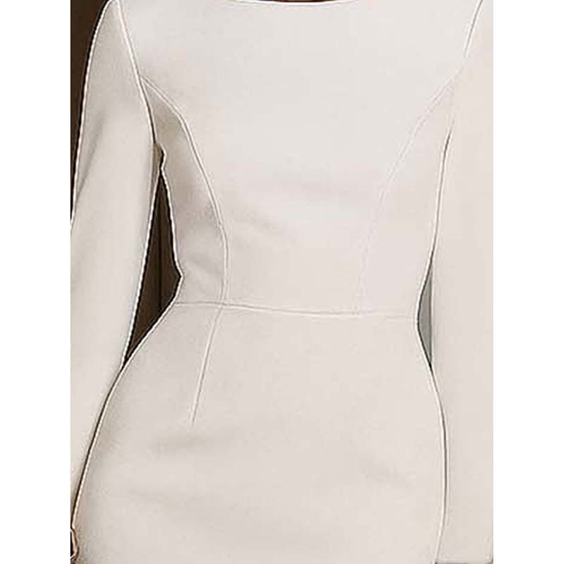 Women's Elegant Pearl Accent Bodycon Midi Dress With Sleeve Split & Back Zipper, Formal Cocktail Party Club Dress